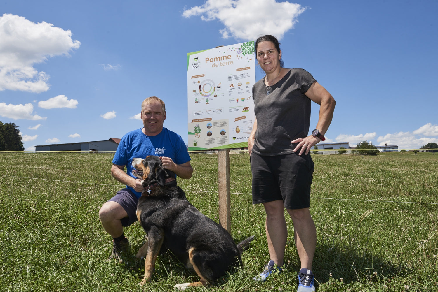 Située à Cugy, dans le hameau de la Grange-des-bois, leur exploitation agricole s'étend sur une soixantaine d'hectares dans la Broye fribourgeoise. Ils se consacrent aux grandes cultures et à l'élevage d'un troupeau de vaches mères de race limousine.