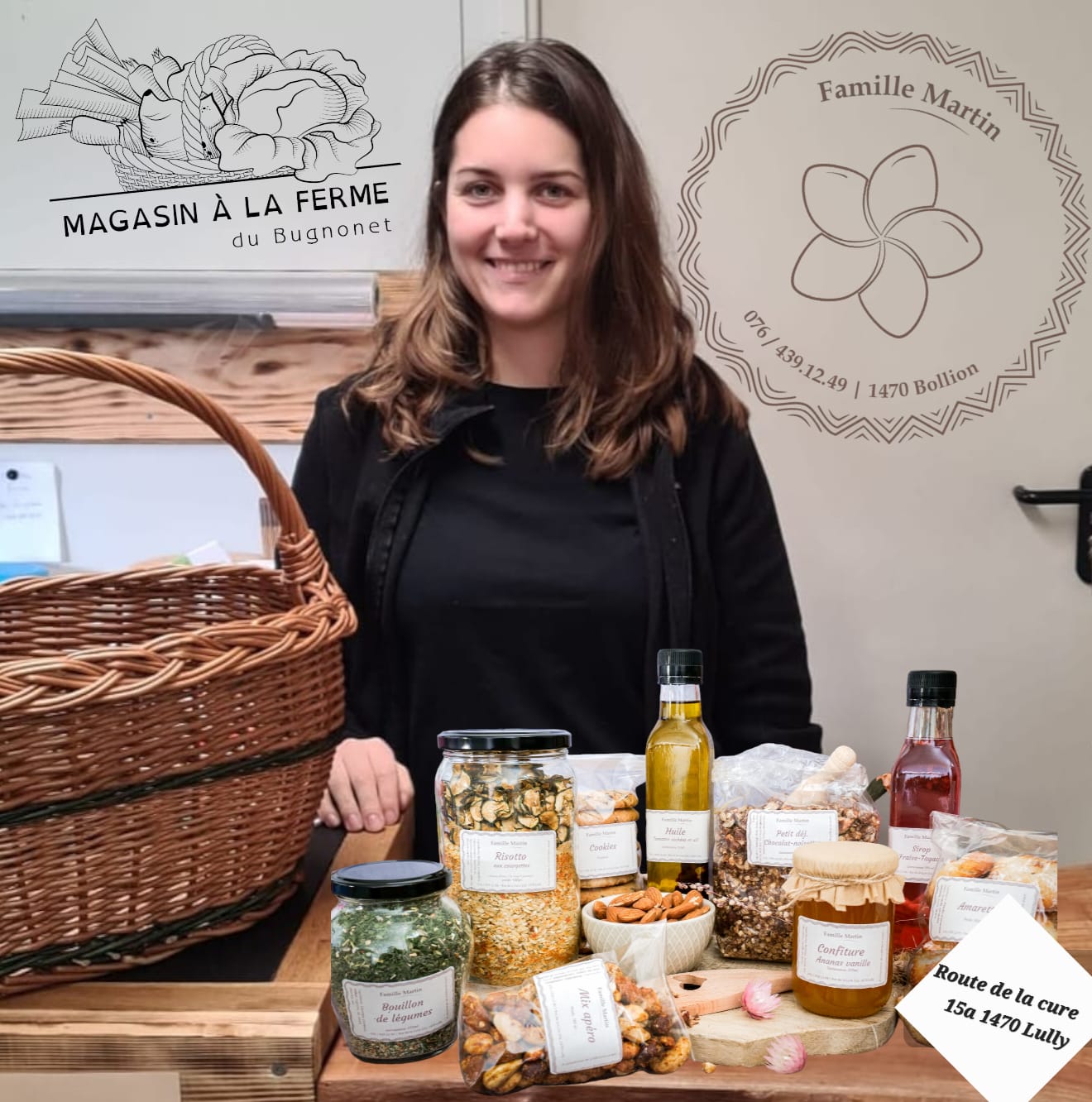 Le Domaine du Bugnonet ou Famille Martin, situé à Lully, est une entreprise agricole dynamique fondée en 2016. Le domaine offre une gamme diversifiée d'activités agricoles allant de la production de grandes cultures et de noix à l'élevage et l'engraissement de porcs, tous commercialisés en partie via leur magasin à la ferme.